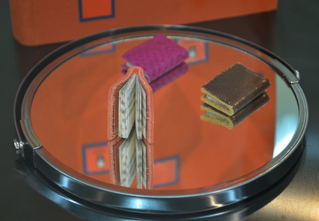 这次在武汉美术馆展出的书,全部是我在巴黎的工坊或北京的工作室里 设计制作的,根据原书的内容,选择适合的形式、材料,有时加入特殊的装 饰元素,使简装书变成结构坚固、风格独特的精装书。能够有机会让更多人 来观赏和了解这项古老而时髦的工作,我非常兴奋,除了书籍展品,也准备 了一些装帧所用的工具材料,整理了许多背景信息介绍的文字内容,希望能 够尽量全面地展现手工装帧的美,并期待认识更多同好,一起欣赏那轮迷人 的“纸月亮”。