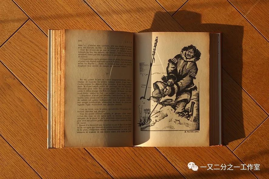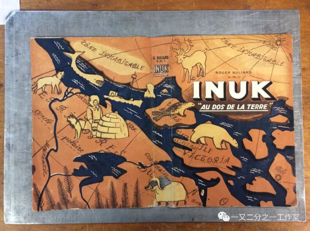 去年,我购入二手书《Inuk》(因纽特人),作者布利阿神父是一位天主教传教士,这本书讲述他在北极传福音的15年间,同爱斯基摩人一起生活的经历,在二十世纪中期出版后,大受欢迎,多次再版。我的这一本是由Éditions Saint Germain出版的平装书,买来时品相不佳,所以先修复封面和内页,补齐缺失的部分,然后根据平装封面设计精装封面,最后进行装订制作和封面装饰。