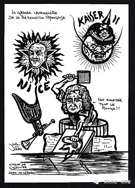 “巴黎公社”以痛苦的牺牲启发了世界无产阶级革命运动,也是许多文学、音乐、戏剧、电影等创作的思想起点和灵感来源,尤其是系列漫画,其中以政治讽刺漫画而著称的Jihel,一位自由而敏锐的哲学家、编辑和艺术家,在上世纪七十年代创作了超过1000张系列明信片《Ciment de l’Histoire》(历史的水泥),文案犀利,绘画风格极其强烈。