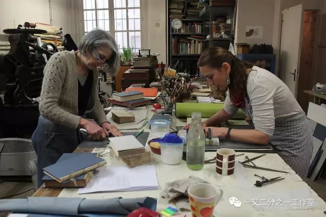 左岸渐渐成为巴黎最热门的旅游景区之一,许多书店、肉铺、裁缝店被时装店、纪念品商店和星巴克代替,这间小小的书籍装帧工坊仍在这里,并不是理所当然的,每一代主人都是它的守护者:就在几个月前,凯瑟琳收到一封房租涨价通知,新价格比之前翻了一倍,由于这里是政府所有的房屋,凯瑟琳亲自去市政厅拜访市长,解释情形,使相关部门撤回决定,才终于度过危机。一到七月底,她就躲进南部的度假屋,享受完全的清静,这样,回到左岸的伯纳德街工坊,才能继续精神饱满地投入繁重的制书工作、处理工坊日常事务、跟老客户聊时事政治、给学生们讲解示范、向误入的游客解释这里不开放参观……工坊常常人满为患,有时凯瑟琳不得不关掉收音机,France Musique电台的古典乐戛然而止,嘈杂的程度得以稍微减轻。像任何行业一样,制书匠的工作从来不只是制书而已。