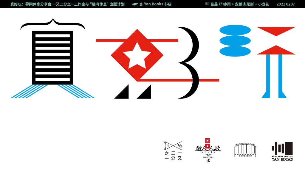 届时他们会为我们分享三本书的创作、设计过程,分别为“幕间休息”出版计划新鲜出炉的艺术家书《真好玩》、《赛文中年超市》和《盲人摸象》,以及他们之前做过的、最近在做的“真好玩!”的事儿。