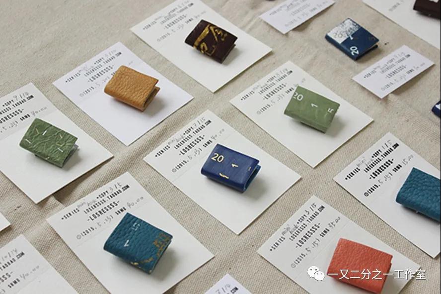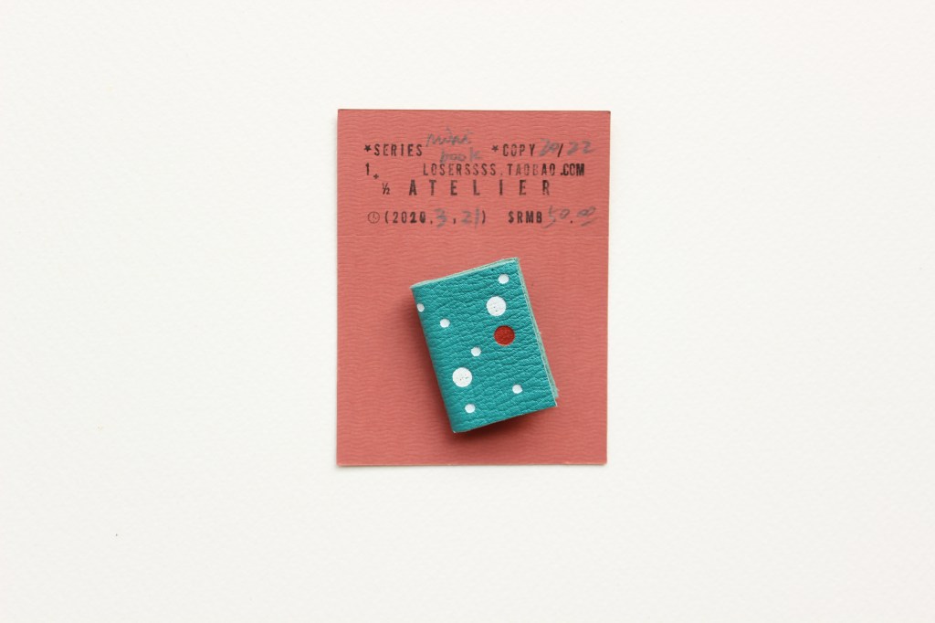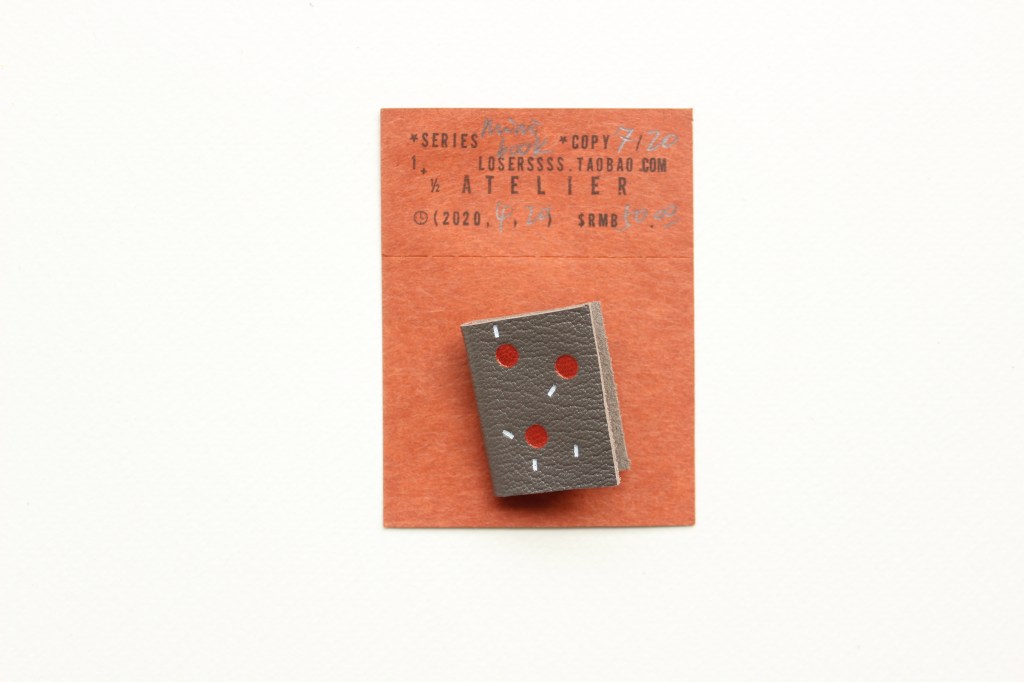 被关在工作室倒也不是坏事,我早就写好了粗略的生活和工作计划,第一件事就是完成迷你书胸针的制作:如封面烫金,安装配件等,所有流程都按部就班。三天后,我数了一下,整整100本!又确认了一遍数量以后,我停下手中的工作,开始准备卡纸背板,手工印章,每张纸上都写好按照皮革数量而编的号码。这100本迷你书,是疫情期间的副产品,2020年的第一件完成品。