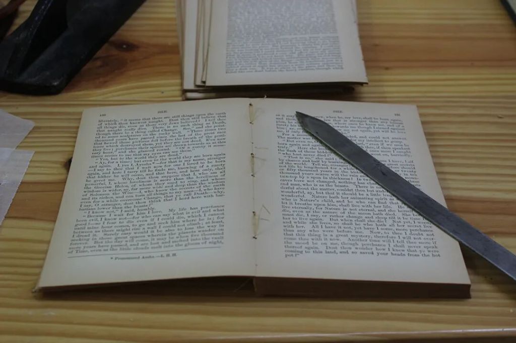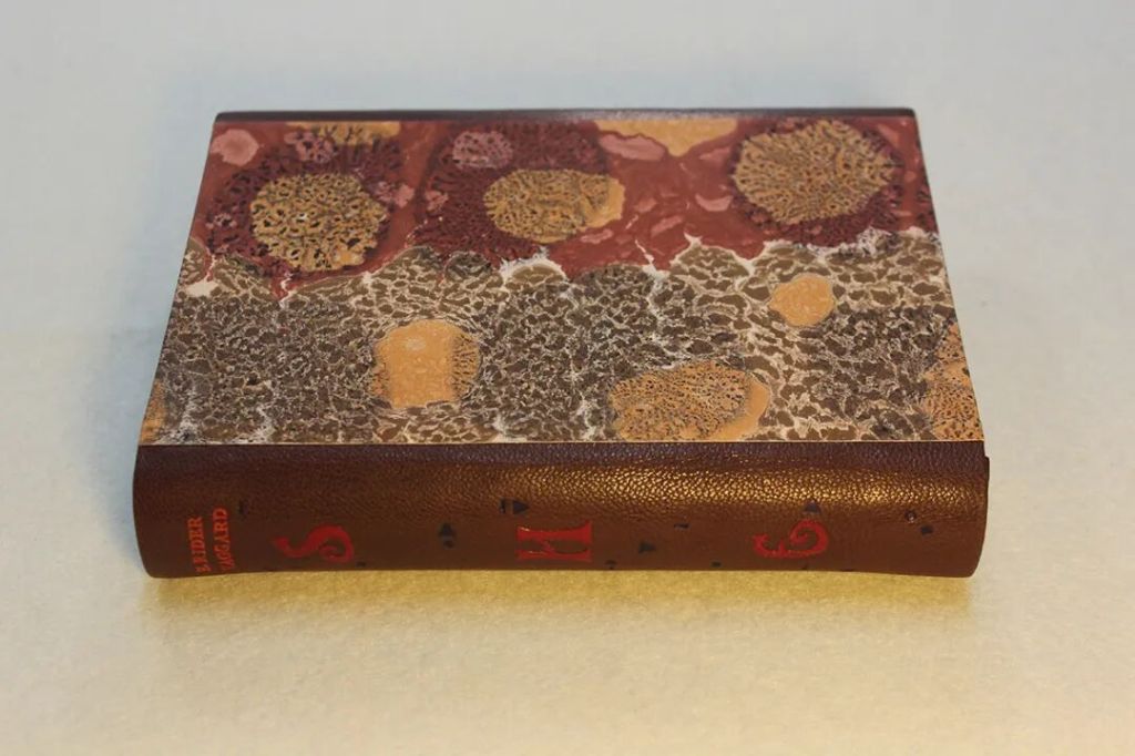 去年装帧的这本英国探险小说,作者是Hennry Rider Haggard,维多利亚世代大受欢迎的小说家,他常年居住在非洲,作品多为惊心动魄的爱情冒险故事。19世纪的英国,殖民扩张正盛,人人都想一窥古老神秘的异国风情,这也是《SHE》风靡一时的原因。民国时期,即有中文引进版,连钱钟书也提过儿时读到其中猛兽搏斗片段时目瞪口呆的紧张心情,这本书当时有个吸睛的译名:《三千年艳尸记》。