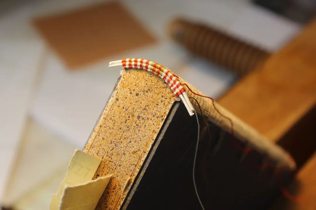 先把上书口刨平,打磨后喷色装饰,最后上一层薄薄的蜂蜡,轻轻抛光。用丝线手缝堵头,除了美观,也是封住书脊两端、防灰防霉的好方法。