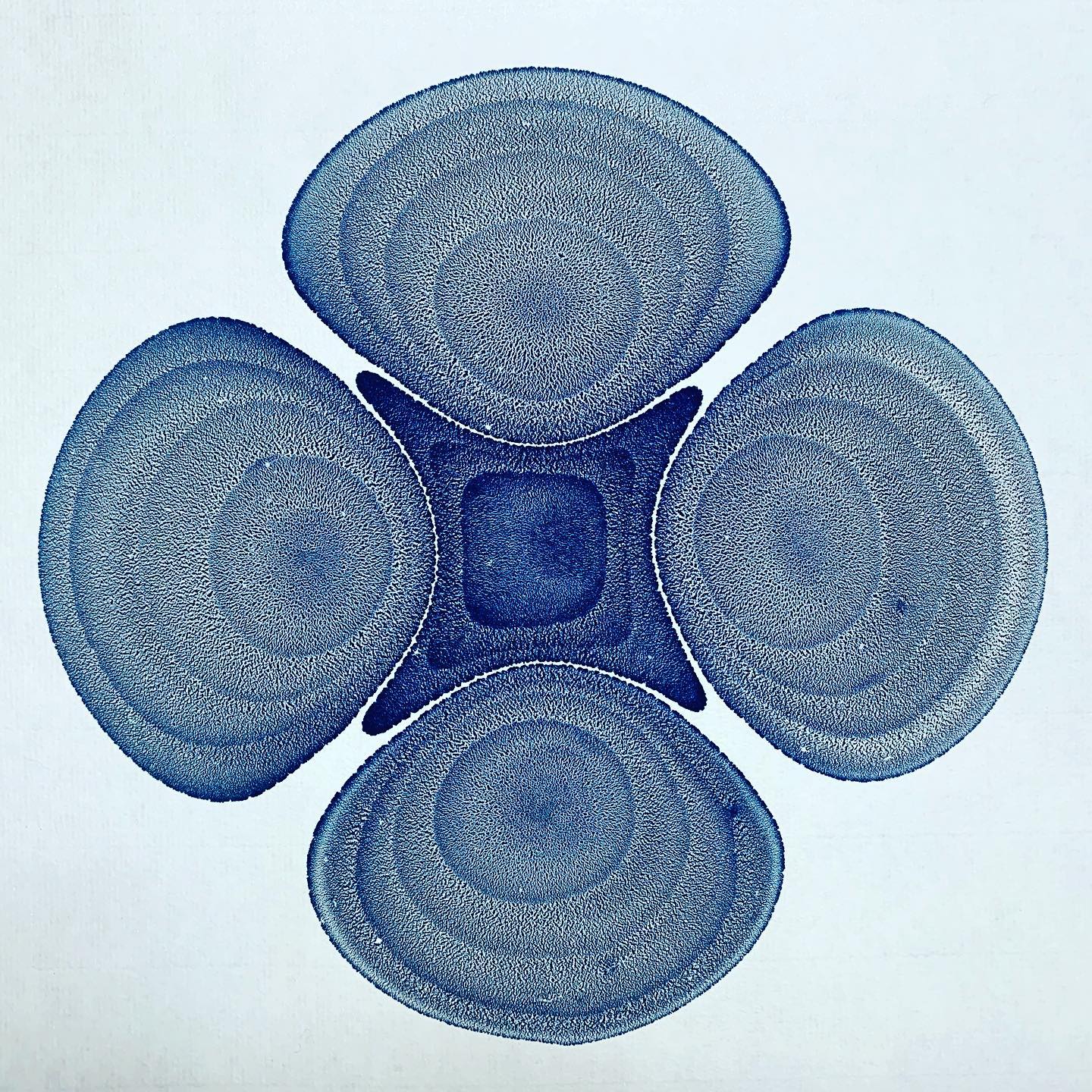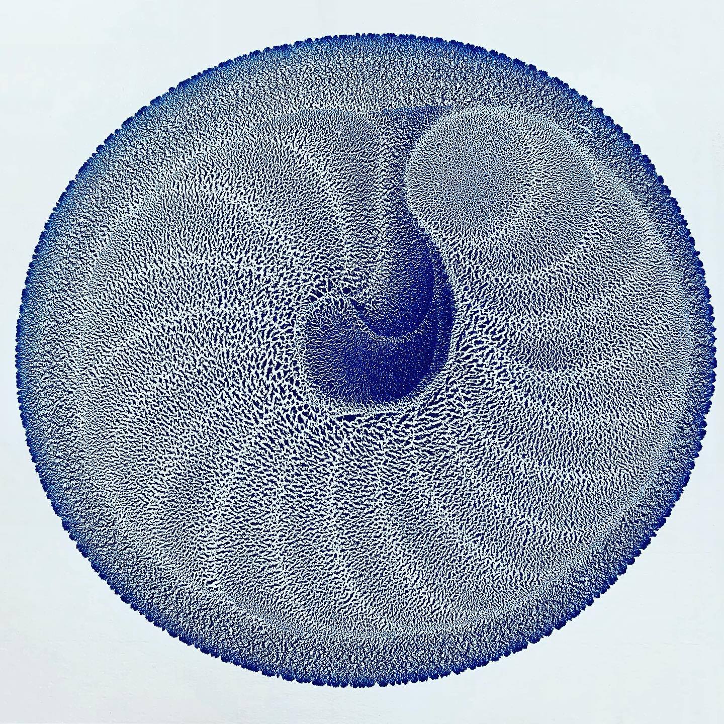 2016年,应邀与艺术家Xavier Antin共同完成的“Partition pour Baris”是一组图像作品,灵感来源于扫描仪发生故障时产生的异常图案,这一过程和结果让艺术家联想到大理石纹纸的制作过程。训练有素的手的轻微偏差,液体流动引发的随机波动…… 即使让经验丰富的工艺师以同一手法不断绘制纹样,印出成品也各不相同。从一个机械故障出发,以人的重复动作模拟机器,制作大理石纹纸,让两种全然无关的技术发生关联,也是两个时代的对话。