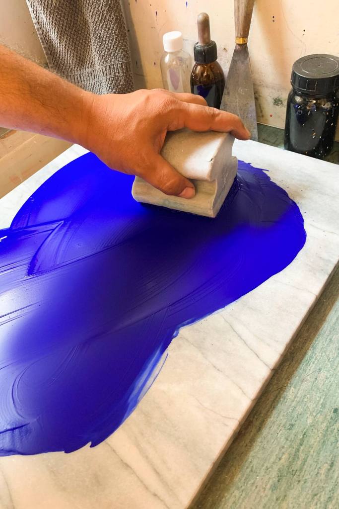 因为做大理石纹纸通常需要比较宽敞和平静的空间,法国的另几位工艺师都住在外省村镇,Baris却反其道而行之,选择了人来人往的巴黎。尽管没有大型工作室,但巴黎的躁动和时尚,让他有更多机会与各式各样的人、机构和媒体接触。Baris热爱交流和体验,除了开设主要提供给游客的短期课程,也热衷于与艺术家、品牌合作,开发自己的产品,让这门古老的手艺参与到当代艺术和生活中,也设法让自己过上想要的生活。
