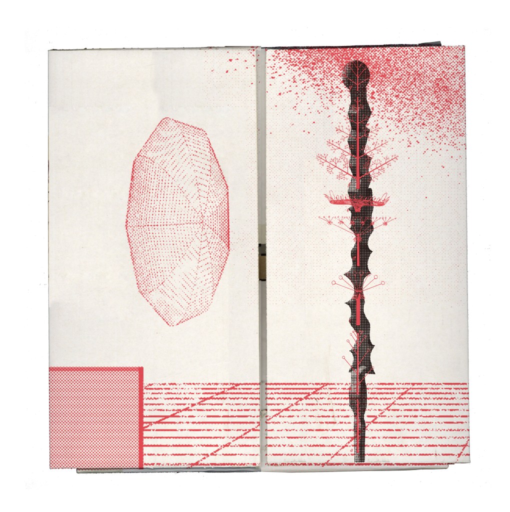 设计师白魁是“夸父逐日”创作全程的观看者,也是纸面作品的参与者。在这个系列中,大多数画面都被设置成单色图像,利用特殊调制的黑色油墨,印刷出厚实的质地和细腻的层次感。而珍贵的彩色画面,则留给了狂奔中的夸父——小龙花以热感应图像为色彩灵感的创作,是整个故事最绚丽壮美的部分,也是艺术家对心目中的夸父形象的最完整表述。